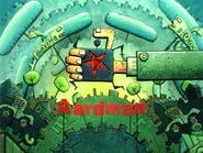 Visuals: We open on a background made out of red clay. Suddenly, the "AARDMAN" text, in the same font as the prior logo, slowly extrudes out of the clay, as if it was being pushed, accompanied by a drop shadow. Once it stops, a small ball made out of the same red clay falls down and bounces on the first "A" letter, morphing into the star shape and standing next to the text.