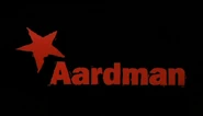 Visuals: On a black background is the Aardman logo, taking the wordmark and one of the stars on the top left of the text from the 1st print logo. The entire logo is red and has tiny spots surrounding it.