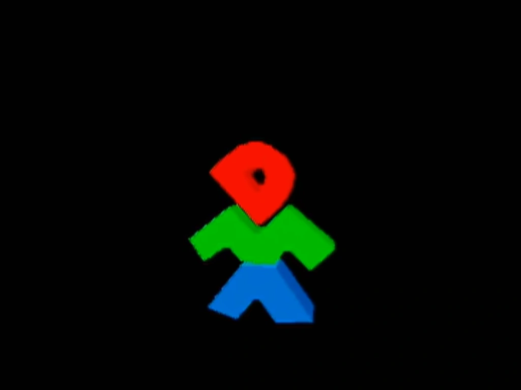 Logo: Over a white background, we see the DMA Man standing on the surface. He looks around, as a rocket comes and blows up the DMA Man. The letters then fall back and the "A" disconnects.