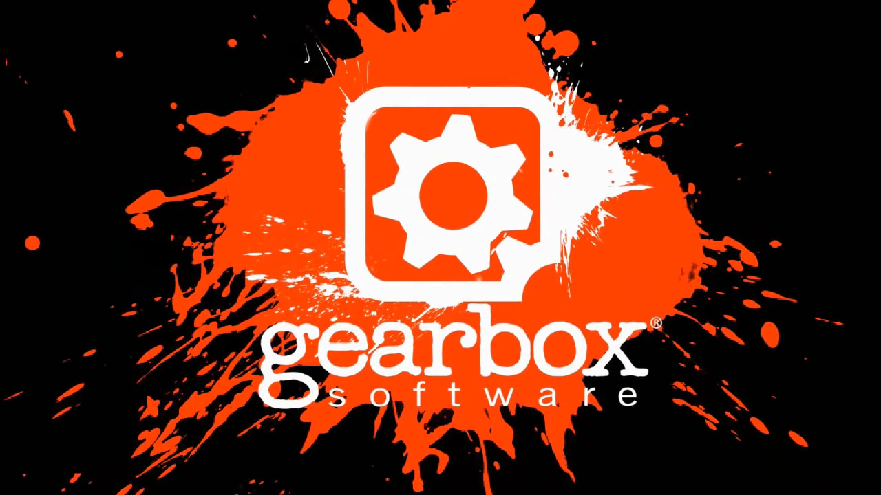 Logo: On a black background, there is the Gearbox logo in white. Then, the gears spin and the logo, excluding the text, zooms in to the center of the screen. The gears then settle to their usual positions, and the logo fades out.