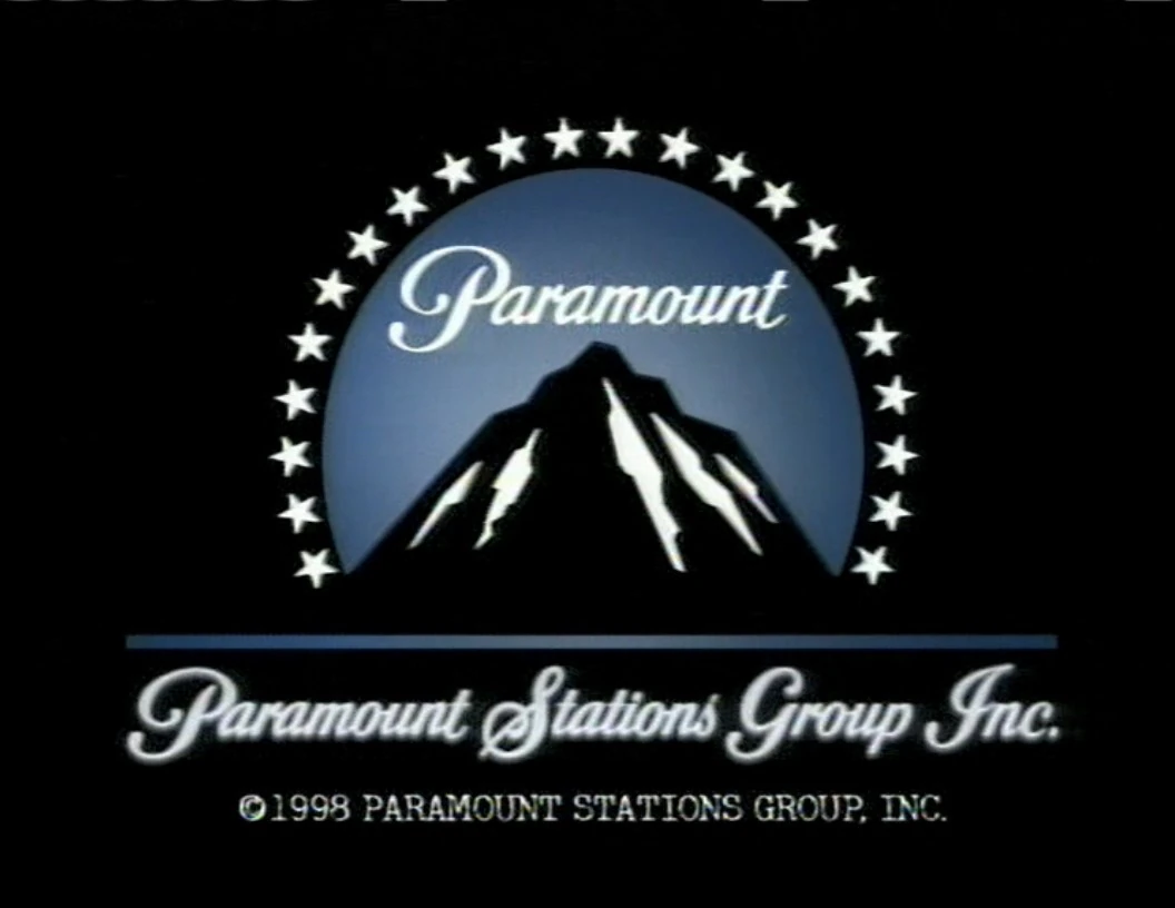 Logo: On a background with moving clouds, we see the Paramount mountain used from the 1986 movie logo with the words "Paramount Stations Group Inc." in its trademark font below. The Paramount print logo, a long blue line under it, and the stars in their near-circle formation appear from the center of the mountain zooming in. As this happens, the background starts fading to black, the blue line grows longer, and the stars circle around the logo to their spots around the blue border. Once the logo forms, the copyright stamp "© [YEAR] PARAMOUNT STATIONS GROUP, INC." fades in below the name and both the border and the line shine.