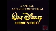- A few releases that use this logo before the previews have Brian Cummings saying "Coming from Walt Disney Home Video." This would be used for the short version on the 1991 video release of The Jungle Book, and for the long version on DuckTales the Movie: Treasure of the Lost Lamp and original prints of Wild Hearts Can't Be Broken.