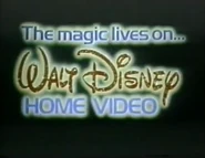 - At the end of the Walt Disney and You promo that typically appeared at the end of tapes from this period, a video freeze occurs near the end of the logo (all the outlines are dark blue, except for the outline facing us which is light blue), and the text "The magic lives on... WALT DiSNEY HOME VIDEO" zooms in, along with a cartoon version of Sorcerer Mickey (as seen on the box). The announcer of the promo then says "Now available from Walt Disney Home Video".